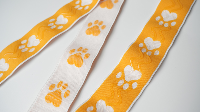 主要為梭織帶和針織帶兩大類。織帶,特別是提花織帶,與布標工藝有點相似,但是布標經紗固定,由緯紗表達圖案;而織帶基本緯紗是固定的,由經紗表達圖案,用的是小機器,每次打版、生產穿紗和調整機器可能都要花很長時間,而且效率相對不高。但是可以制造出種類繁多,眼花繚亂的產品,并不象布標那樣總是那幾樣面孔。織帶主要功能是裝飾性的,也有是功能性的。如流行的手機吊帶等。帶子織出來以后,還可以絲印各種文字/圖案,一般比直接把文字圖案織出來會便宜些。